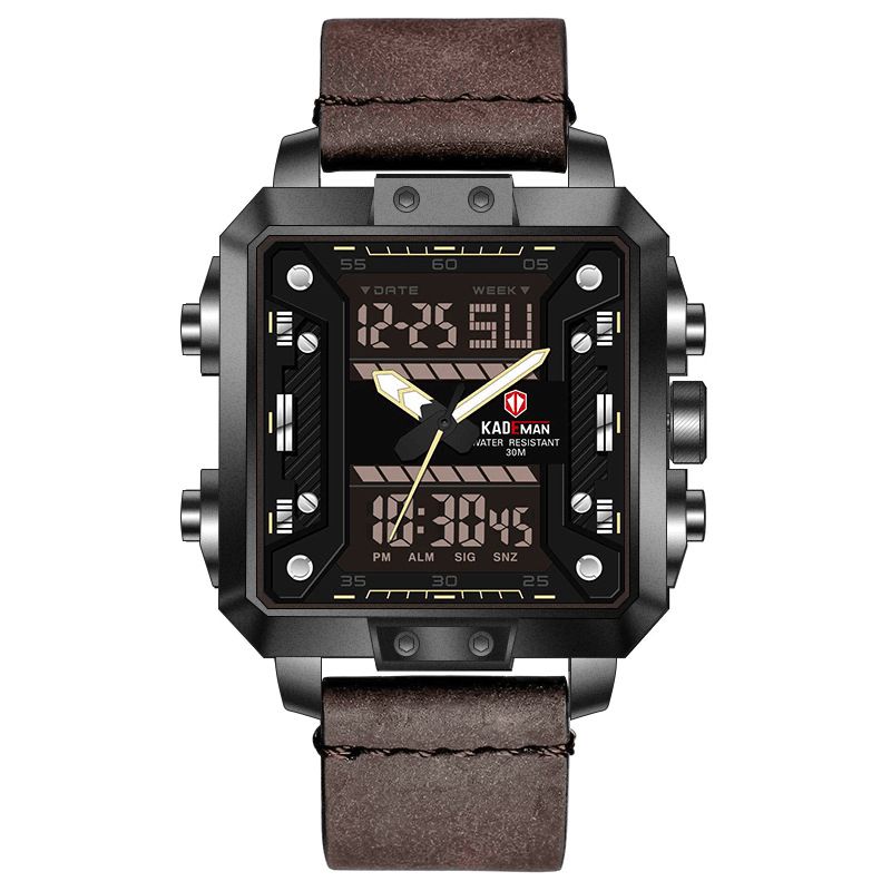 Kademan K6153 Mote Herre Digital Klokke 3Atm Vanntett Lysende Uke Display Lærreim Dual Display Klokke