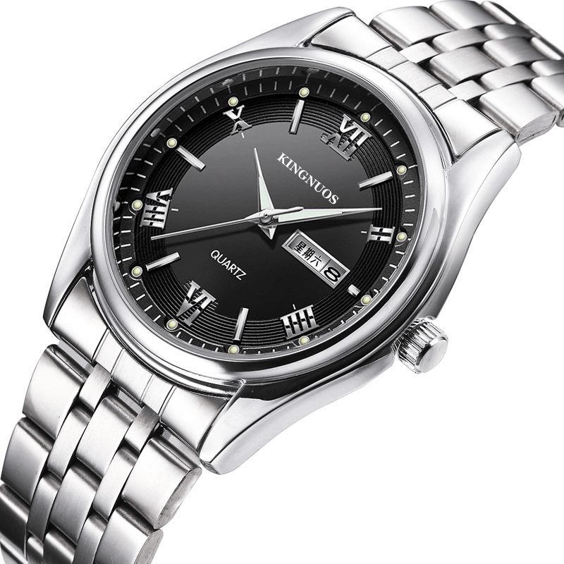 Kingnuos 1858 Full Steel Casual Style Menn Armbåndsur Dato Week Display Kvartsklokke