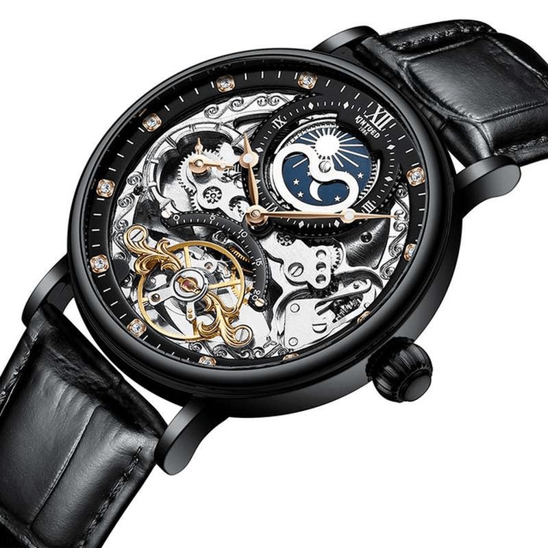 Kinyued Jyd-J055 Business Style Automatisk Mekanisk Klokke Ekte Lærreim Herreklokker