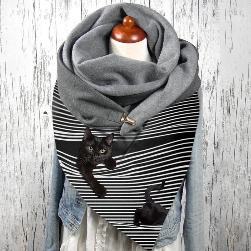 Kvinner 3D Tredimensjonal Tegneserie Søt Svart Katt Stripemønster Personlighet Nakkebeskyttelse Hold Varmen Skjerf
