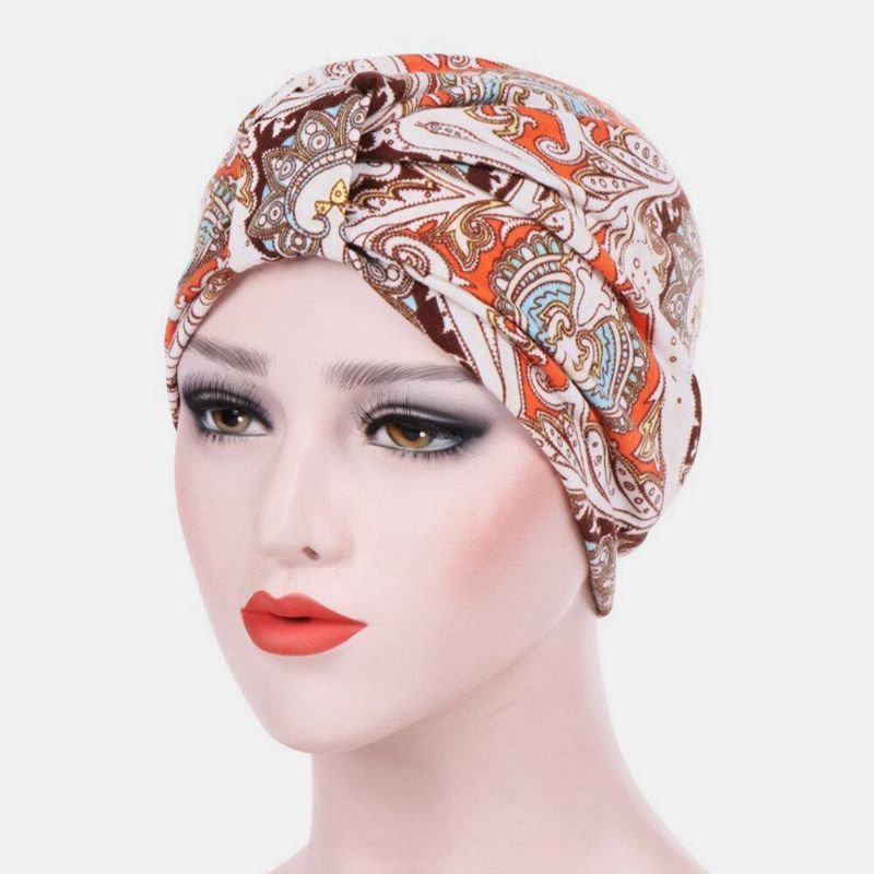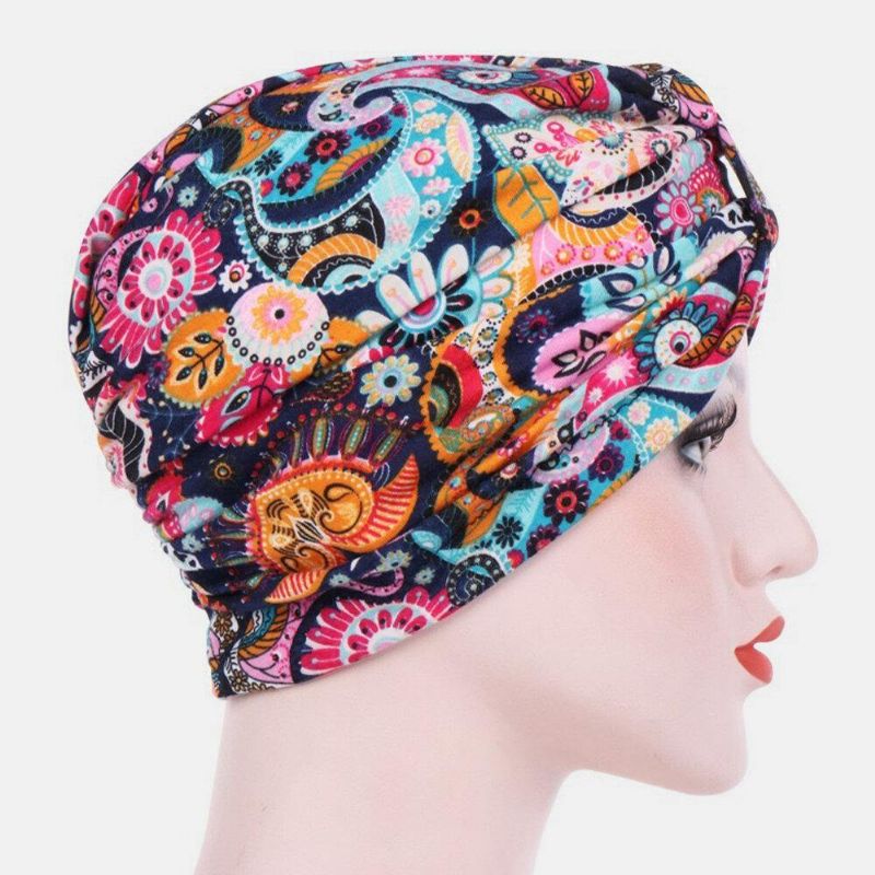 Kvinner Bomull Fargerik Pastoral Blomstermønster Uformell Personlighet Elastisk Brimless Beanie Skjerf