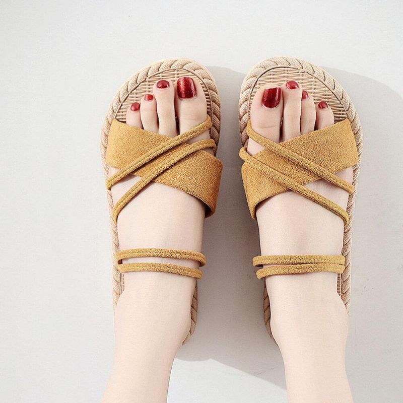 Kvinner Ensfarge Semsket Myk Bottom Flate Sko Tøfler