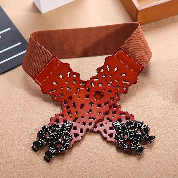 Kvinner Første Lag Skinn Hule Belter Elastisk Strekkbar Metallknapp Midjebånd