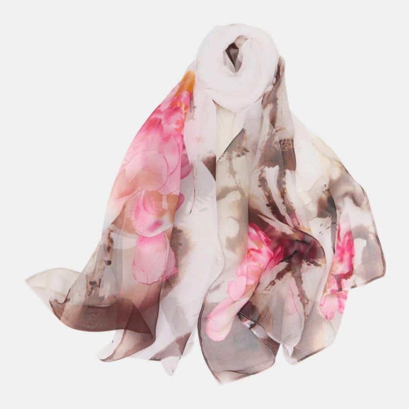 Kvinner Georgette Farget Blomst Utskrift Elegant Lang Tynn Silke Skjerf Sjal