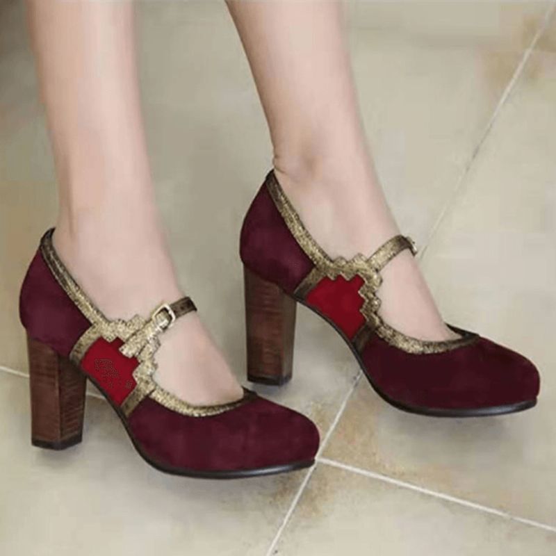 Kvinner Pluss Størrelse Stitching Chunky Heel Pumps
