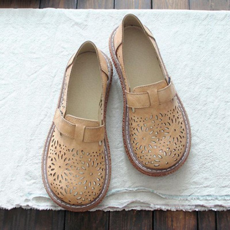 Kvinner Retro Casual Slip On Rund Toe Pustende Slitesterk Loafers Sko