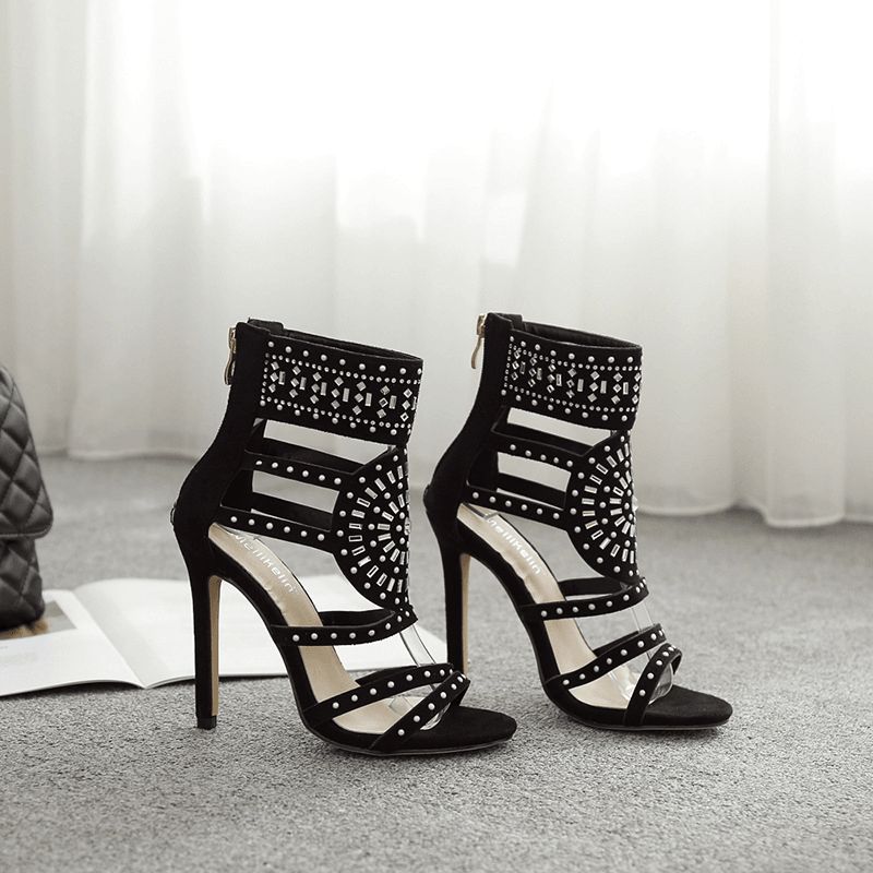 Kvinner Roman Rhinestone Open Toe Party Pumps Med Høye Hæler