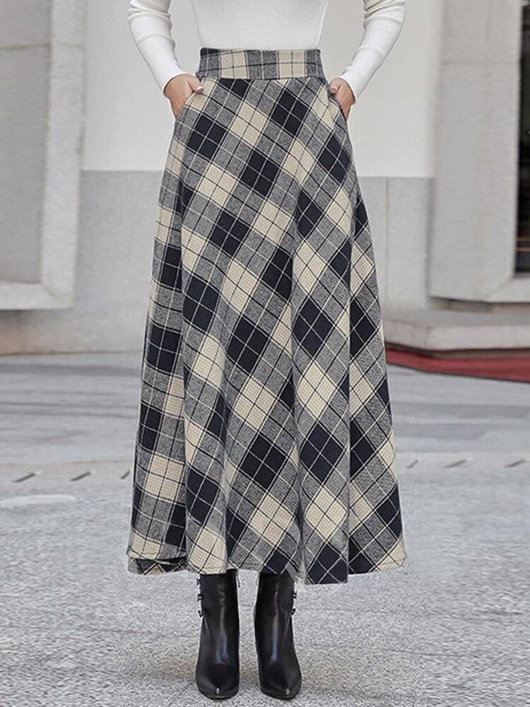 Kvinner Rutete A-Linje Vintage Høy Midje Skjørt Med Lomme