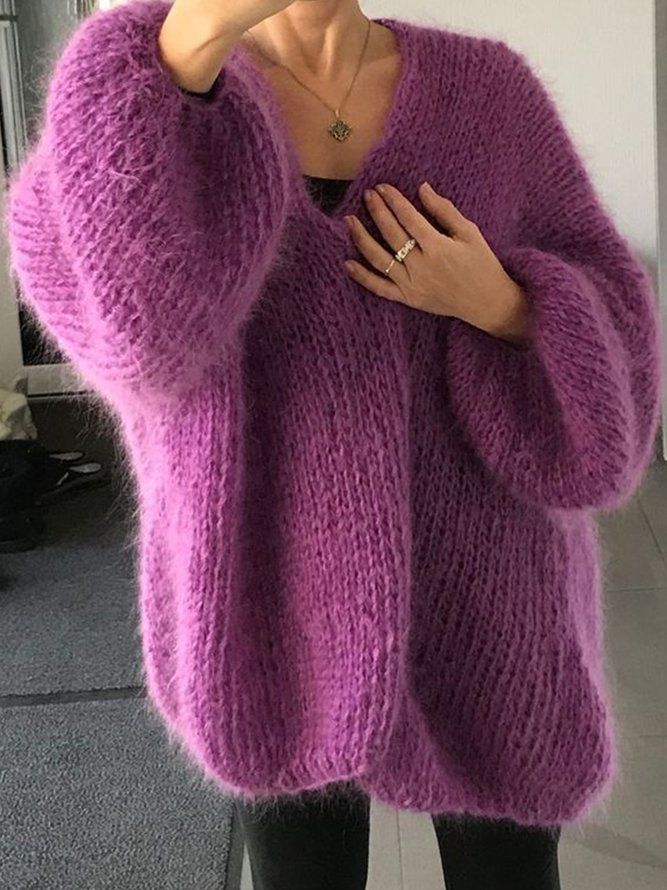 Langermet Casual Solid V-Hals Løs Genser Frakk