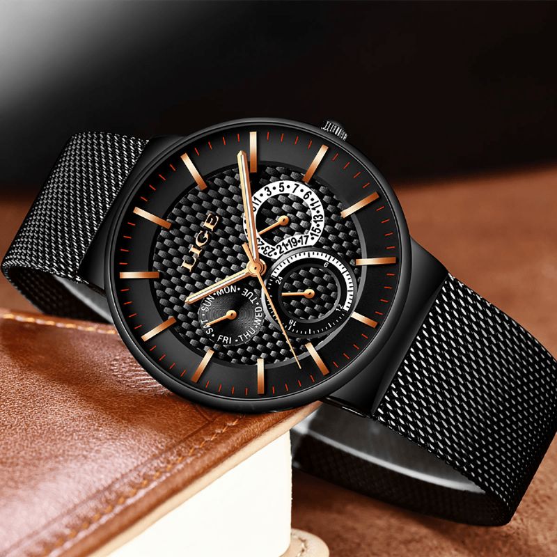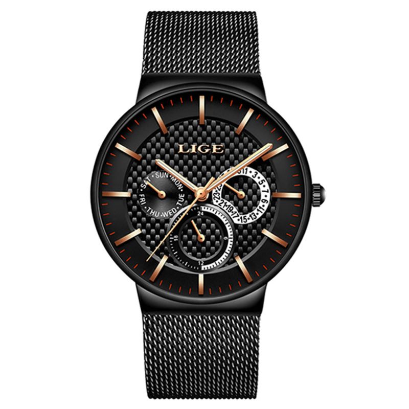 Lige 9836 Business Casual Herreklokke Vanntett Lysende Dato Uke Visning Kvartsklokke