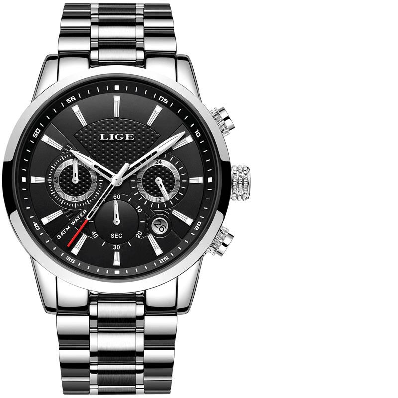 Lige 9866 Chronograph Full Steel Band Herre Armbåndsur Lysende Kvartsklokke