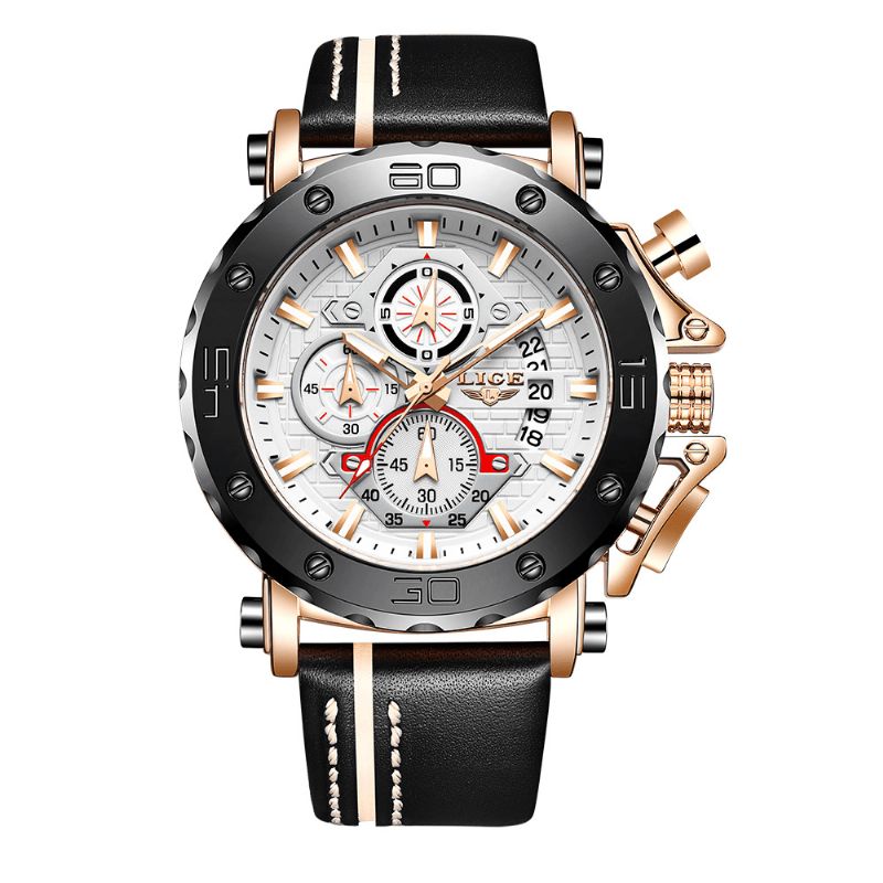 Lige 9899 Mote Lærreim For Menn Luminous Display Watch Quartz Watch