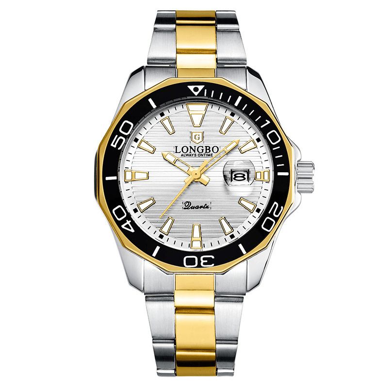 Longgo Business Fashion Lysende Visning Kalender Stålbånd 3Atm Vanntett Herre Armbåndsur Kvartsklokke