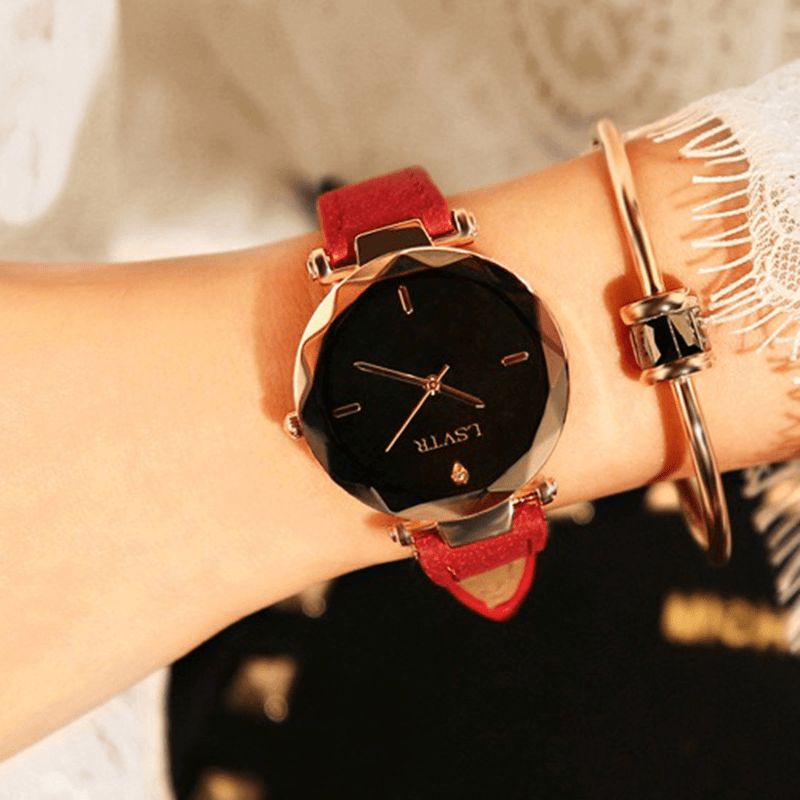 Lsvtr Uformell Mote Diamantmønster Urskive Rhinestone Pu Lærreim Damearmbåndsur Kvartsklokke