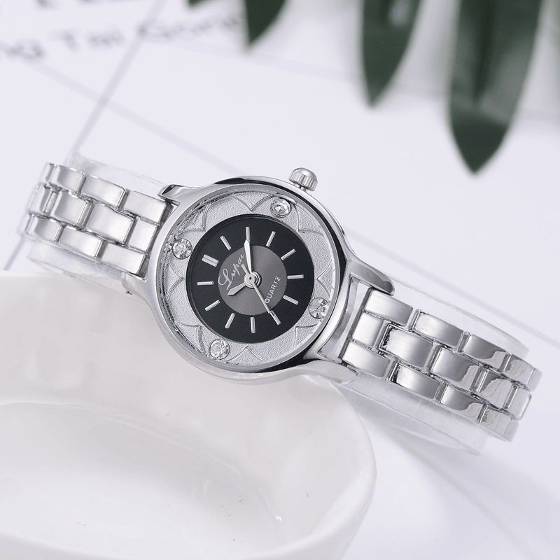 Lvpai Fd1245 Flower Print Dial Dame Armbånd Watch Legering Diamond Kvartsklokke