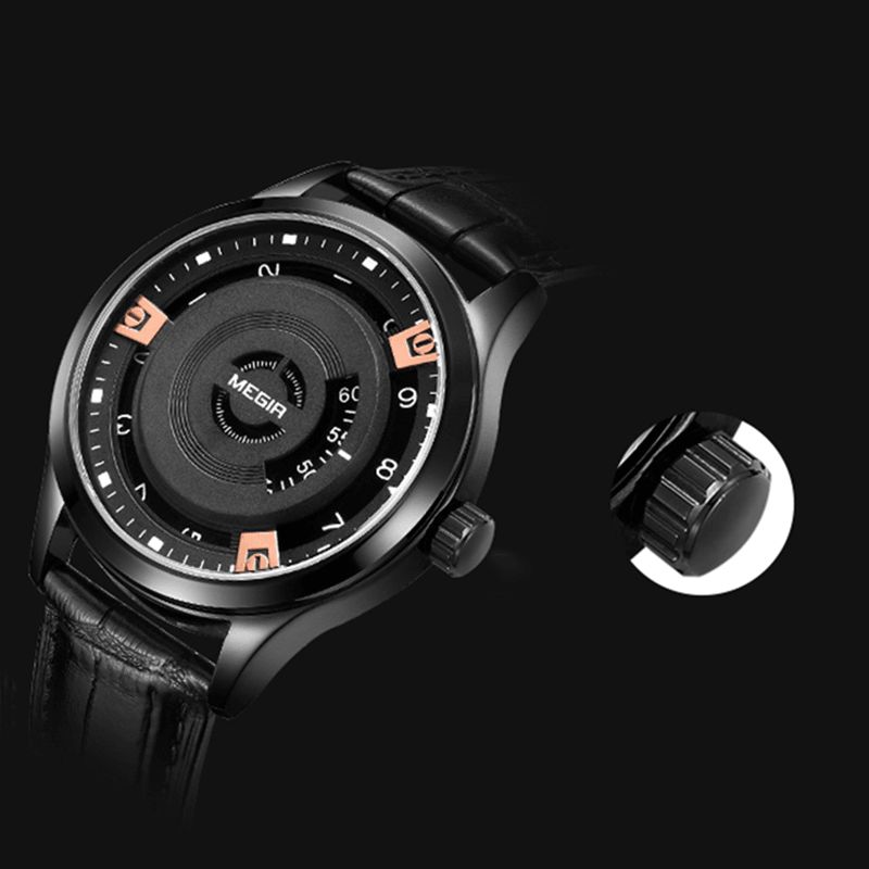 Megir 1067G Kalender I Hverdagsstil Herrearmbåndsklokke I Ekte Skinn Kvartsklokke