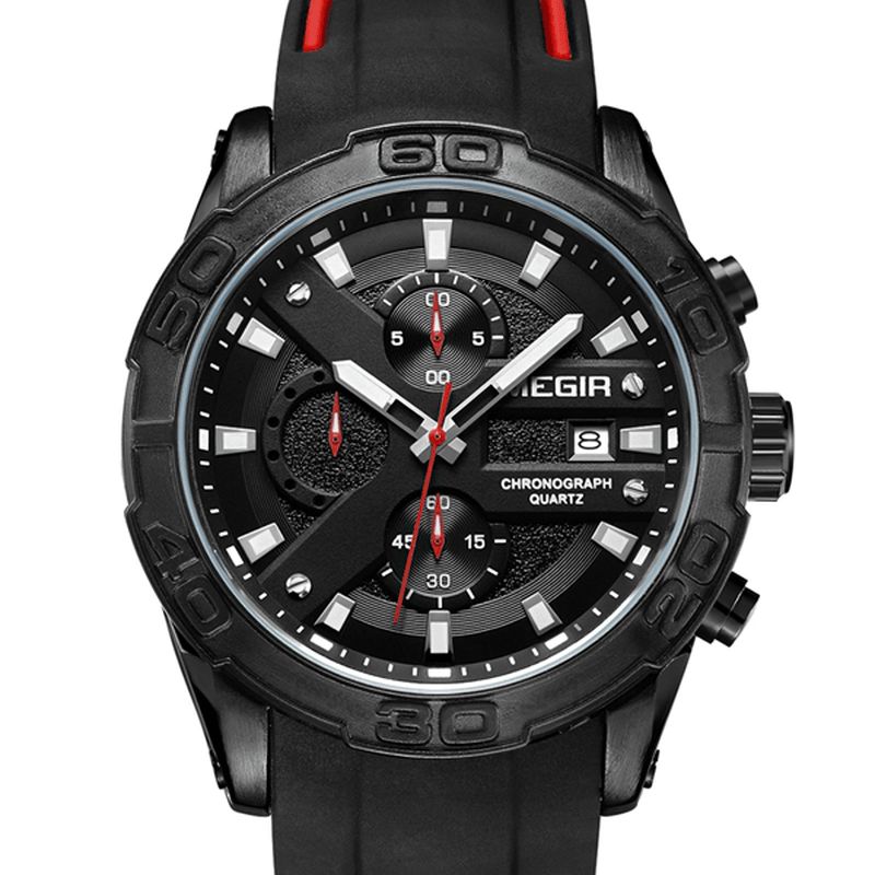 Megir 2055 Sport Watch Herre Quartz Chronograph Svart Mann Armbåndsur