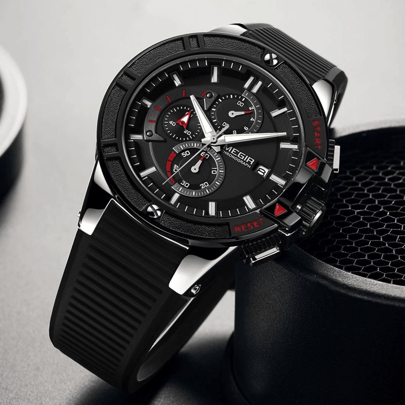 Megir 2095 Fashion Herre Klokke Kronograf Vanntett Lysende Display Sport Kvarts Klokke