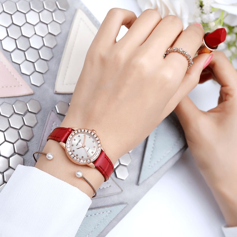 Megir 4205 Elegant Design Dame Armbåndsur Ekte Skinn Band Kvartsklokke