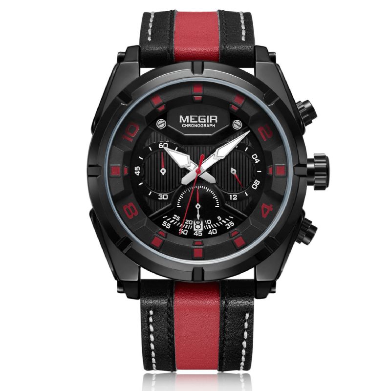 Megir Multifunction Sports Luminous Med Calendar Chronograph 3Atm Vanntett Herrekvartsklokke
