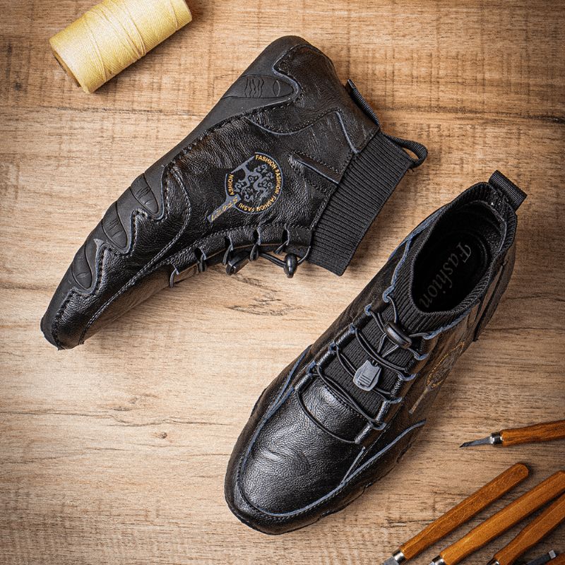 Menico Menn Håndlaget Skinn Sklisikker Myk Sokk Ankelstøvler