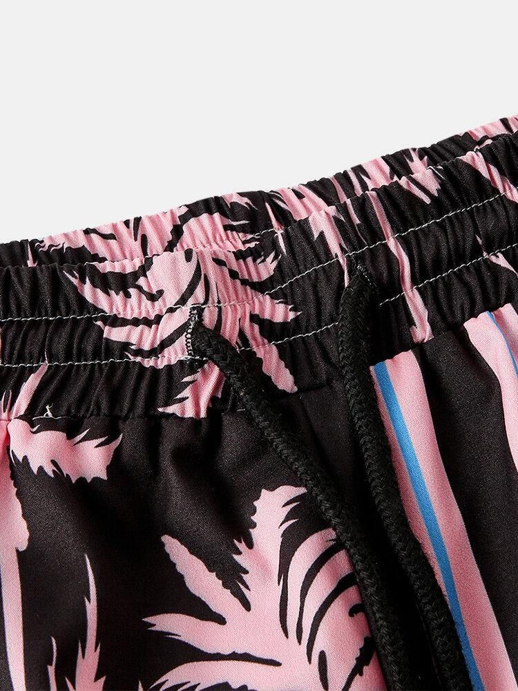Menn Coconut Tree Fargerike Stripe Blandet Print Casual Shorts
