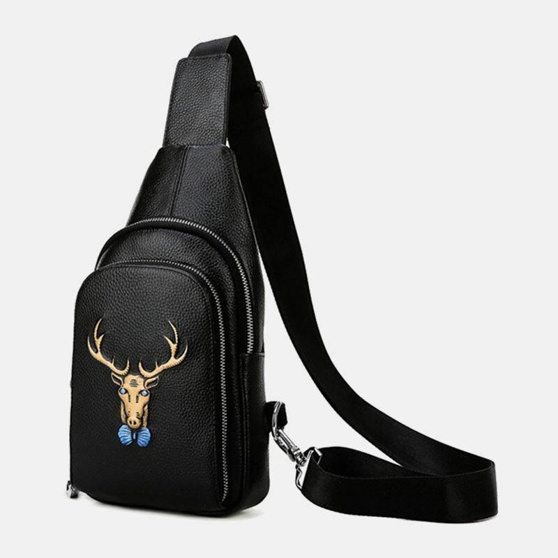 Menn Ekte Lær Dyremønstre Mote Kul Business Skulderveske Brystveske