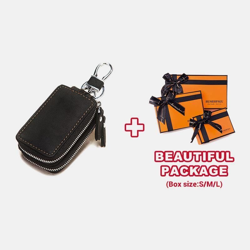 Menn Ekte Skinn Kuskinn Bilnøkkel Oppbevaringsveske Hengende Midjeveske Lommebok