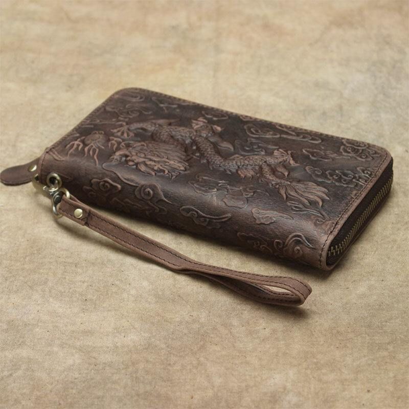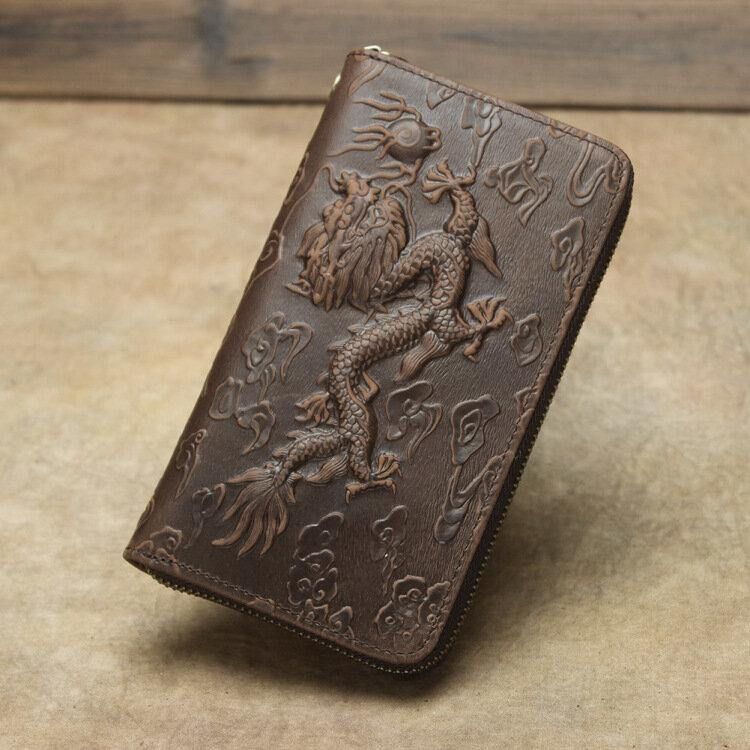 Menn Ekte Skinn Kuskinn Dragemønster Retro Multi-Spor Lang Clutch Lommebok Kortholder