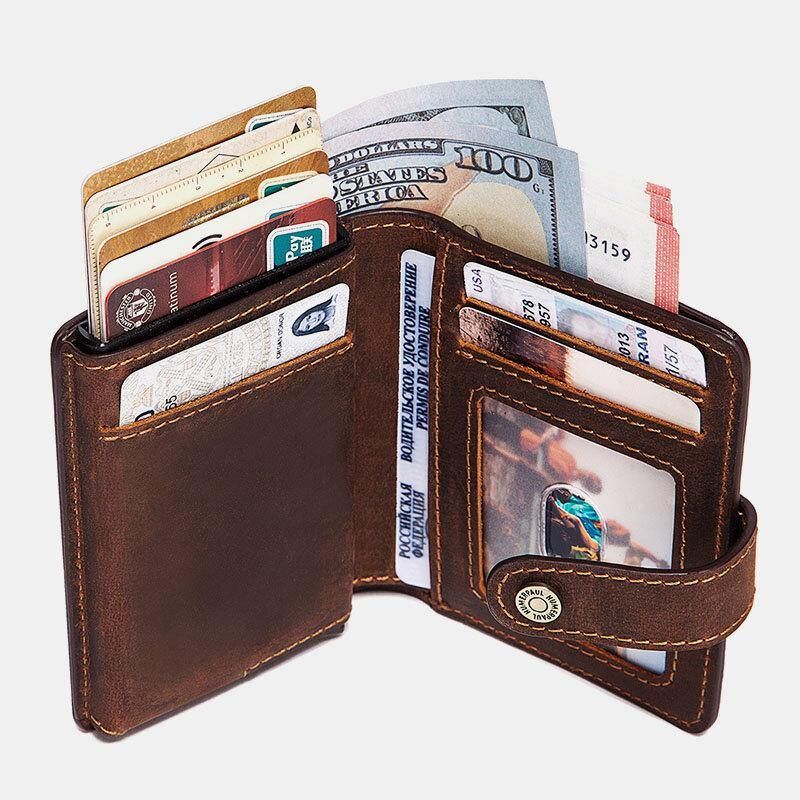 Menn Ekte Skinn Retro Rfid Antimagnetisk Multifunksjon Pengeklemmer Kort Lommebok