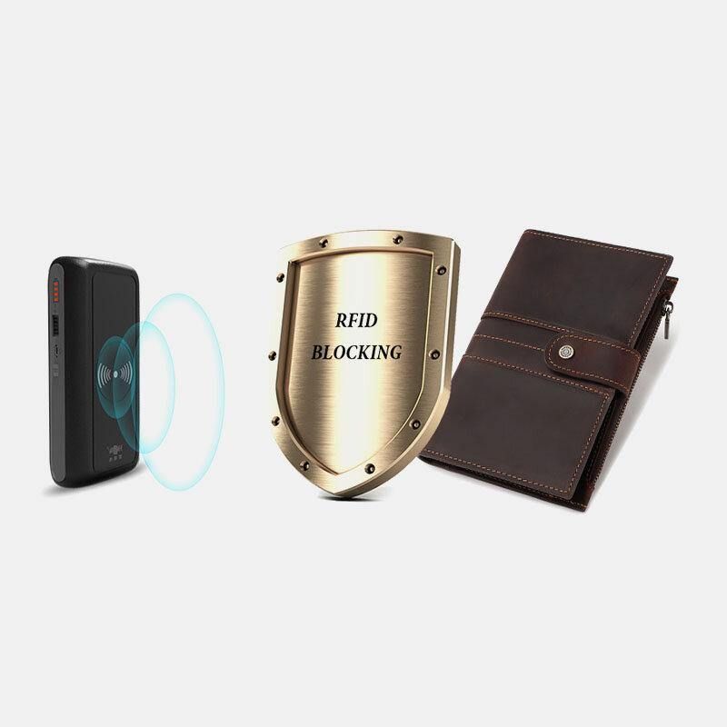 Menn Ekte Skinn Rfid Anti-Tyveri Passport Veske Clutch Veske Håndbære Kortholder Lommebok