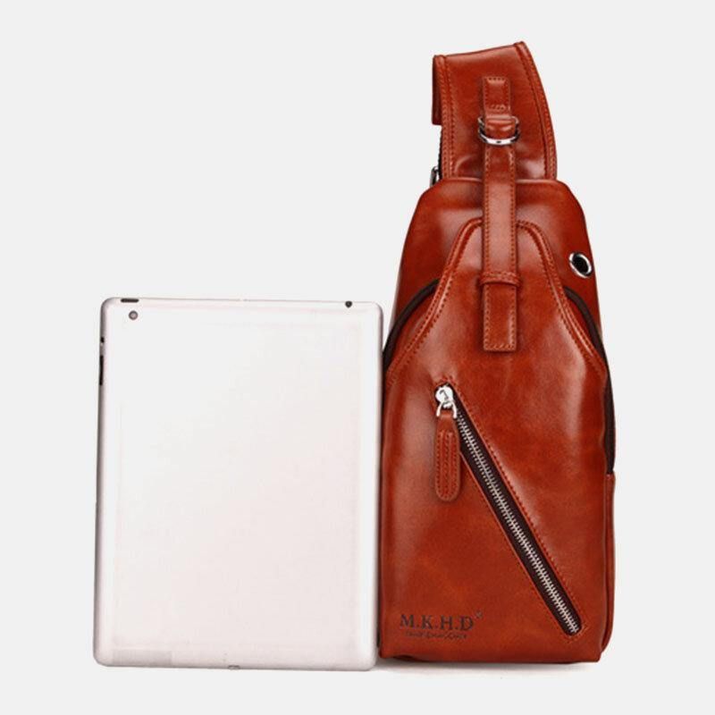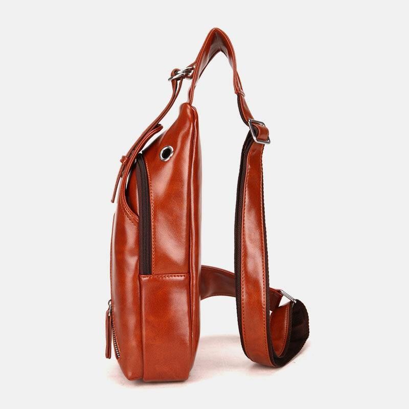 Menn Faux Leather Oil Leather Business Casual Travel Vanntett Skulderveske Brystveske
