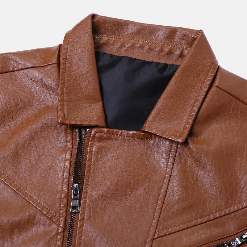 Menn Glidelås Mansjett Multi Lommer Skinn Rytterjakke
