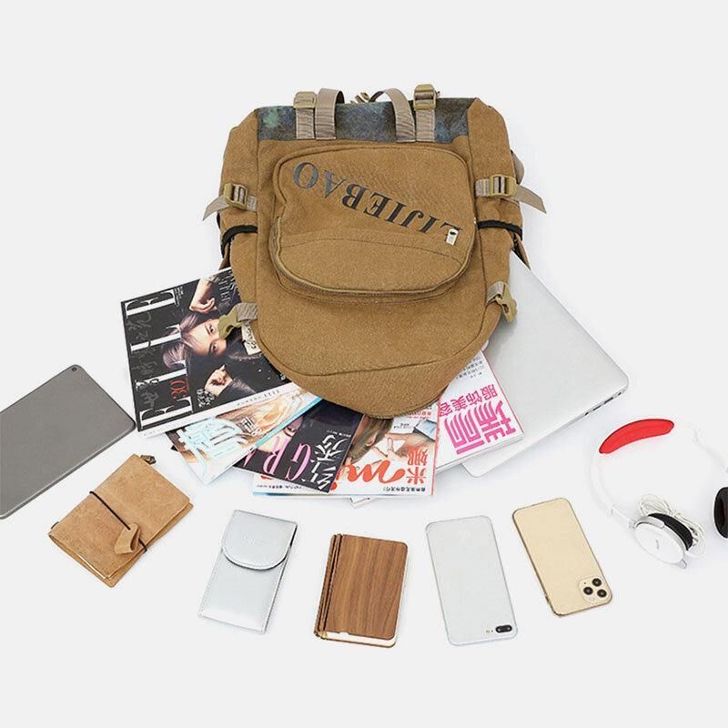 Menn Lerret Stor Kapasitet Taktisk Utendørs Reiser 14 Tommers Bærbar Bag Skoleveske Ryggsekk