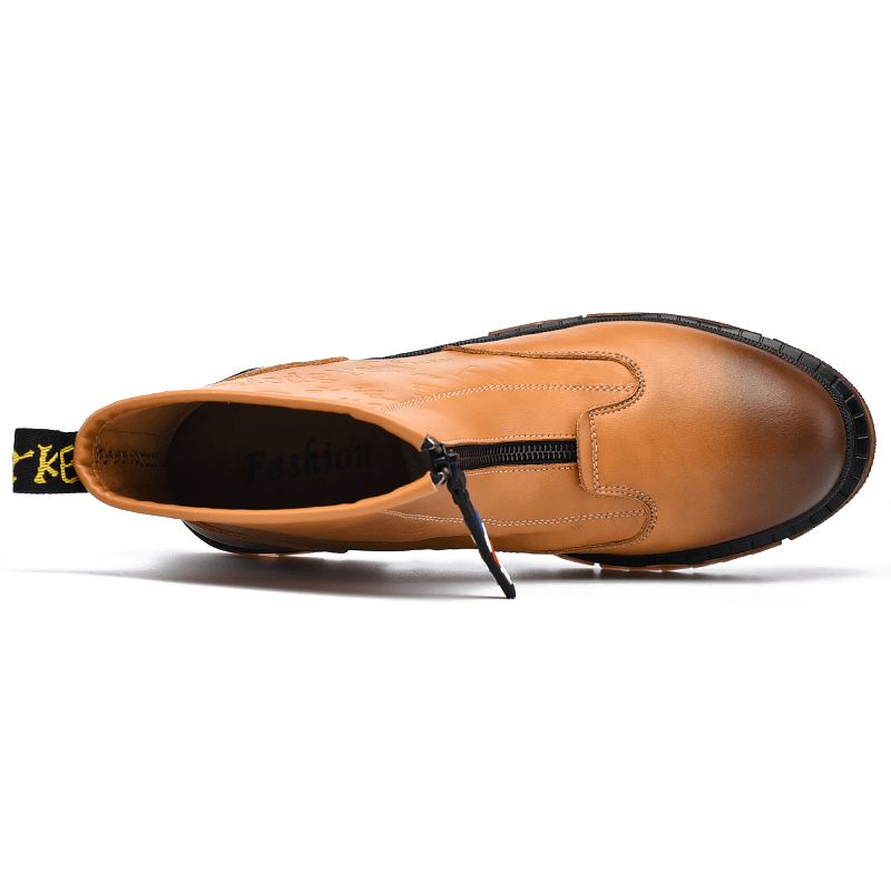 Menn Okseskinn Sklisikker Myk Såle Foran Glidelås Verktøy Korte Støvler
