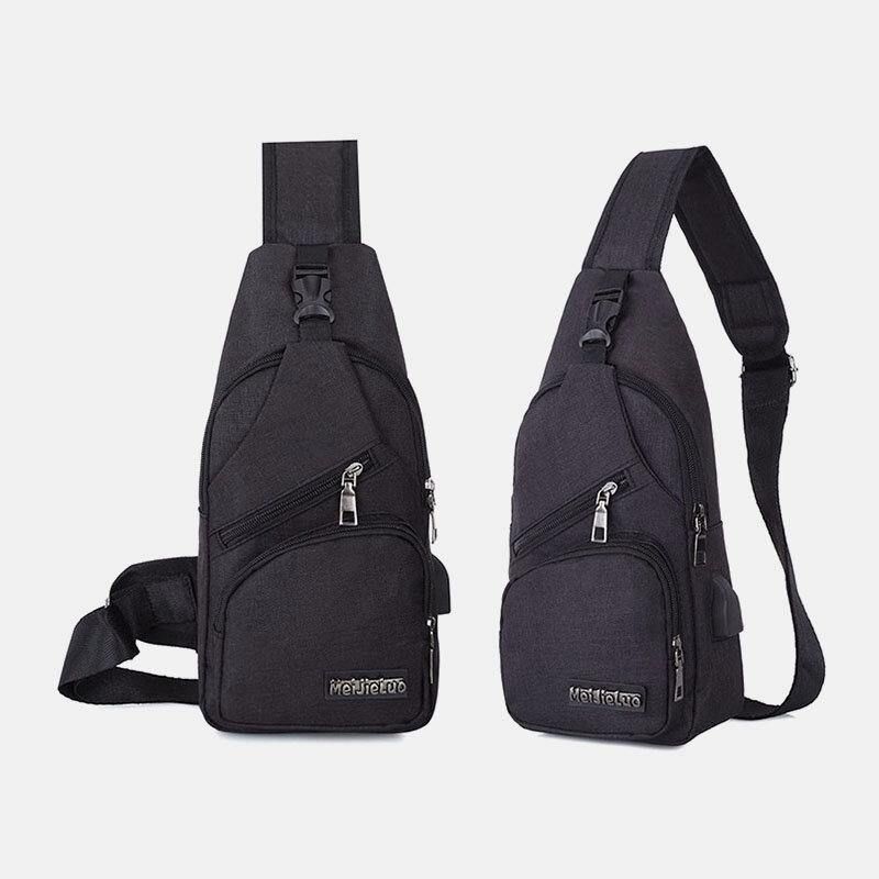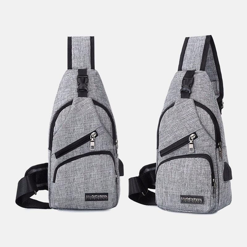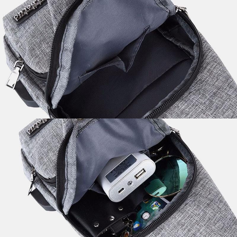 Menn Oxford Cloth Usb Lading Multi-Lomme Stor Kapasitet Vanntett Brystveske Skulderveske
