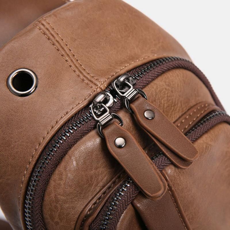 Menn Pu Leather Multi-Pocket Øretelefon Hull Crossbody Bag Bryst Bag Sling Bag
