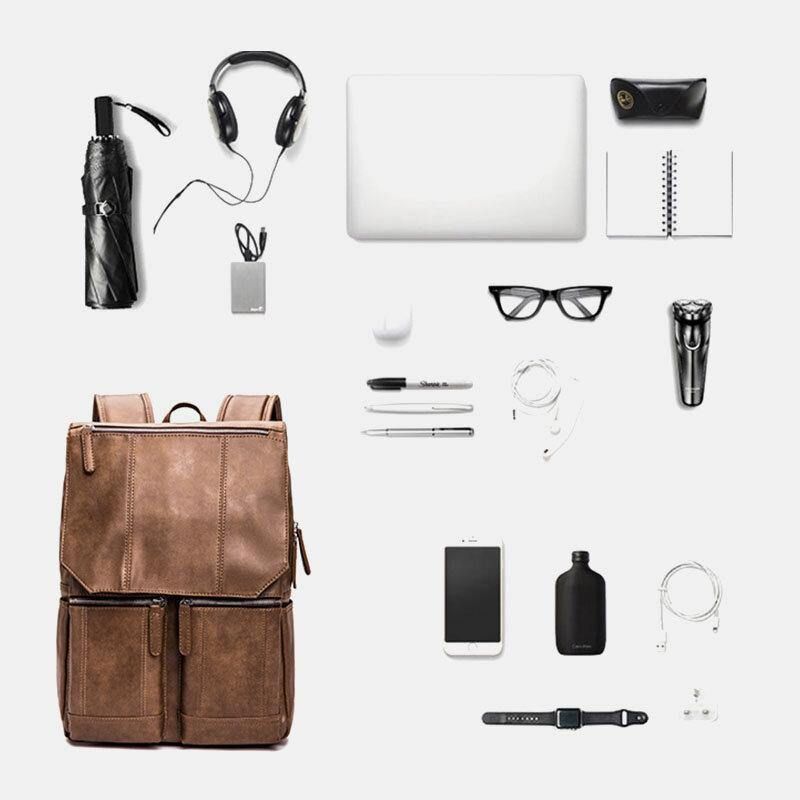 Menn Pu-Skinn Retro Business Casual Style Stor Kapasitet 14-Tommers Bærbar Veske Student Skoleveske Reiseryggsekk