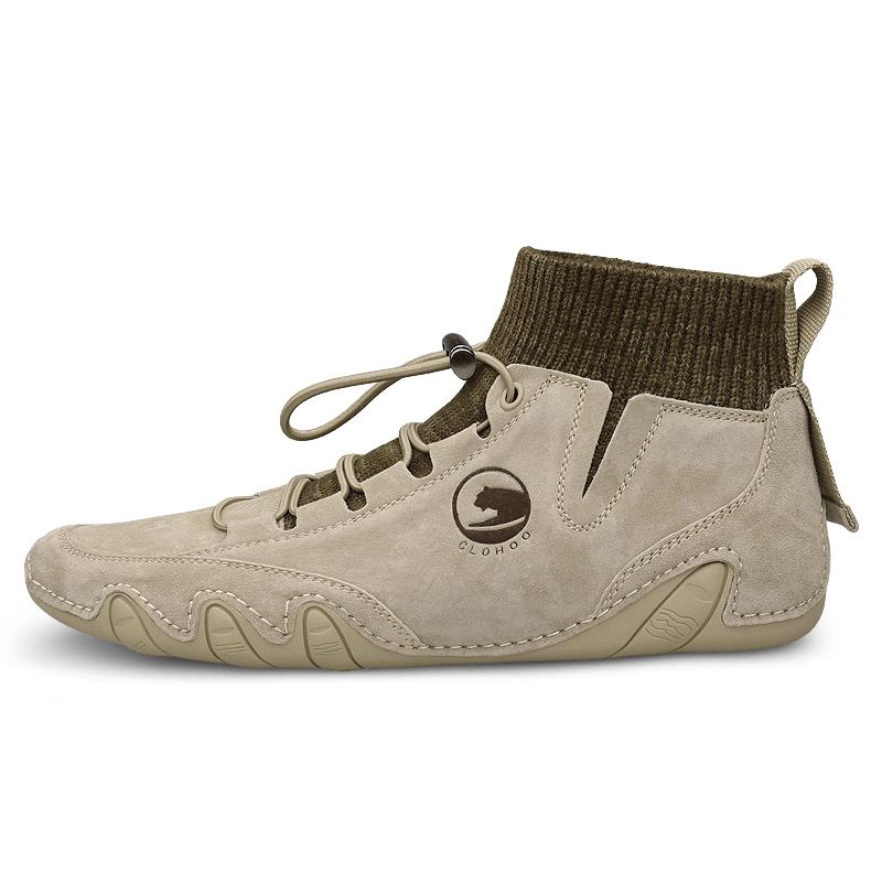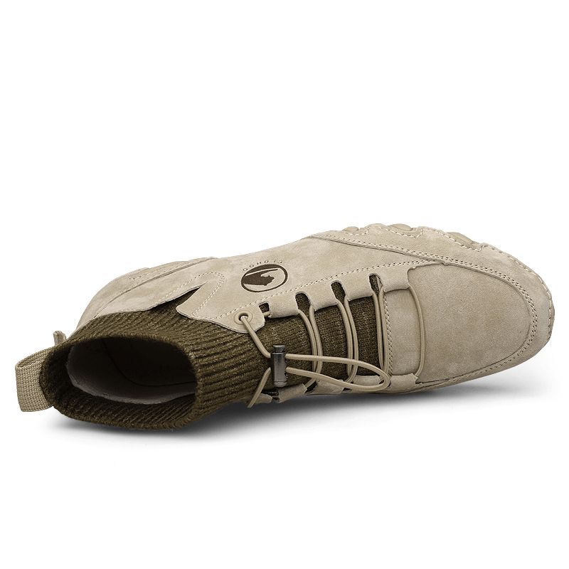 Menn Svineskinn Mykt Sklisikkert Håndlaget Søm Strikkede Sokker Ankelstøvletter