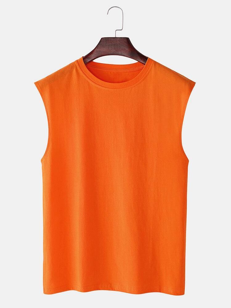 Menns 100 % Bomull Pustende Ensfargede Uformelle Tanktopp