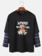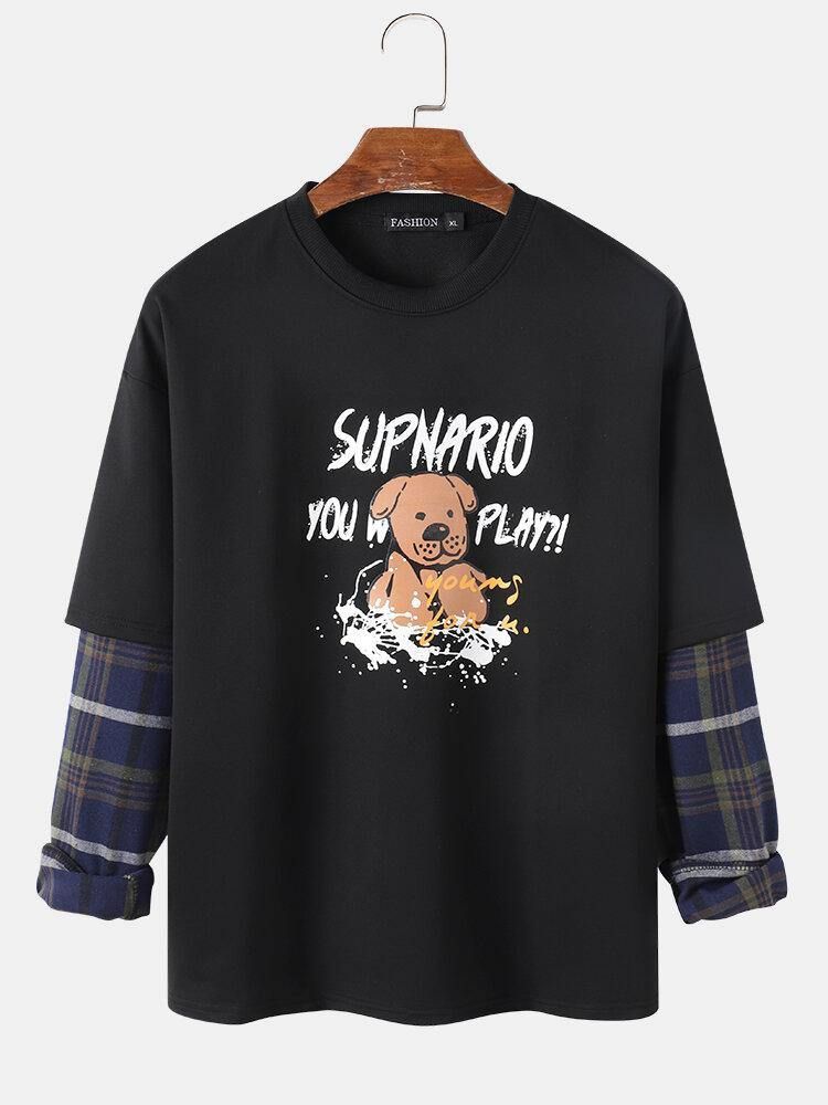 Menns Brev- Og Tegneseriehundetrykk Drop Shoulder Patchwork Rutete Sweatshirts