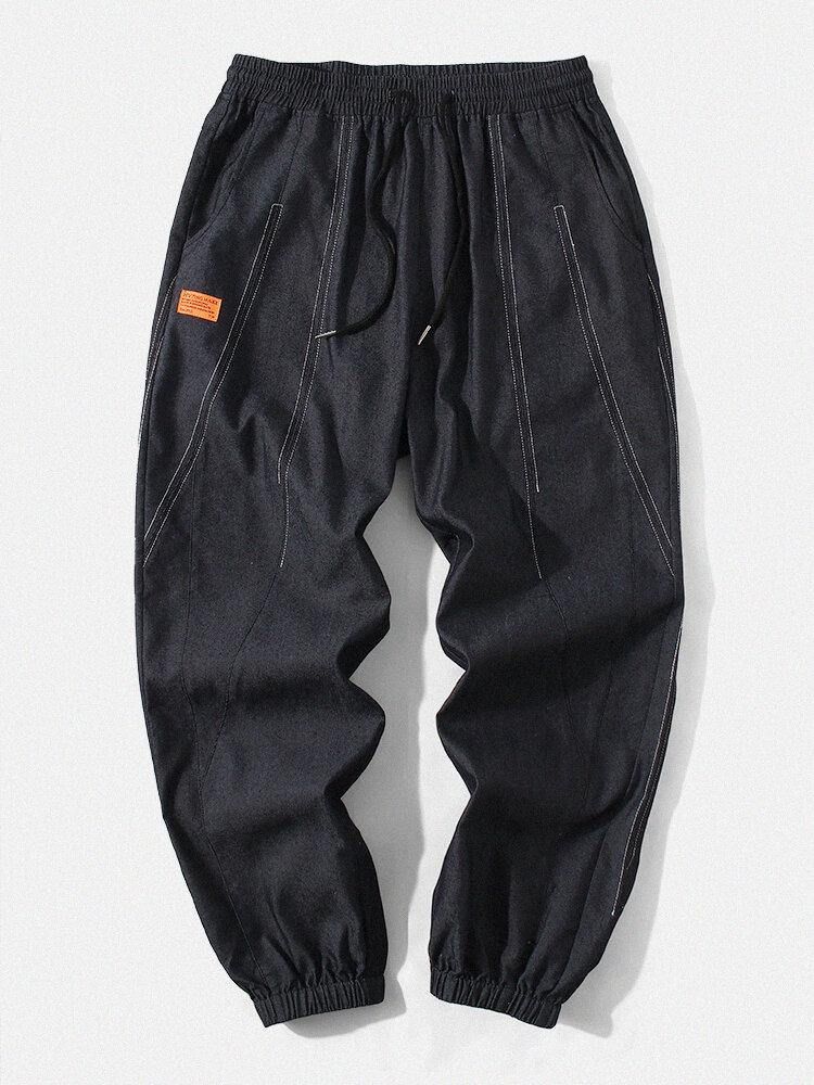 Menns Sømdetalj Applikasjon Elastisk Ankel Løs Bukse Med Snøring