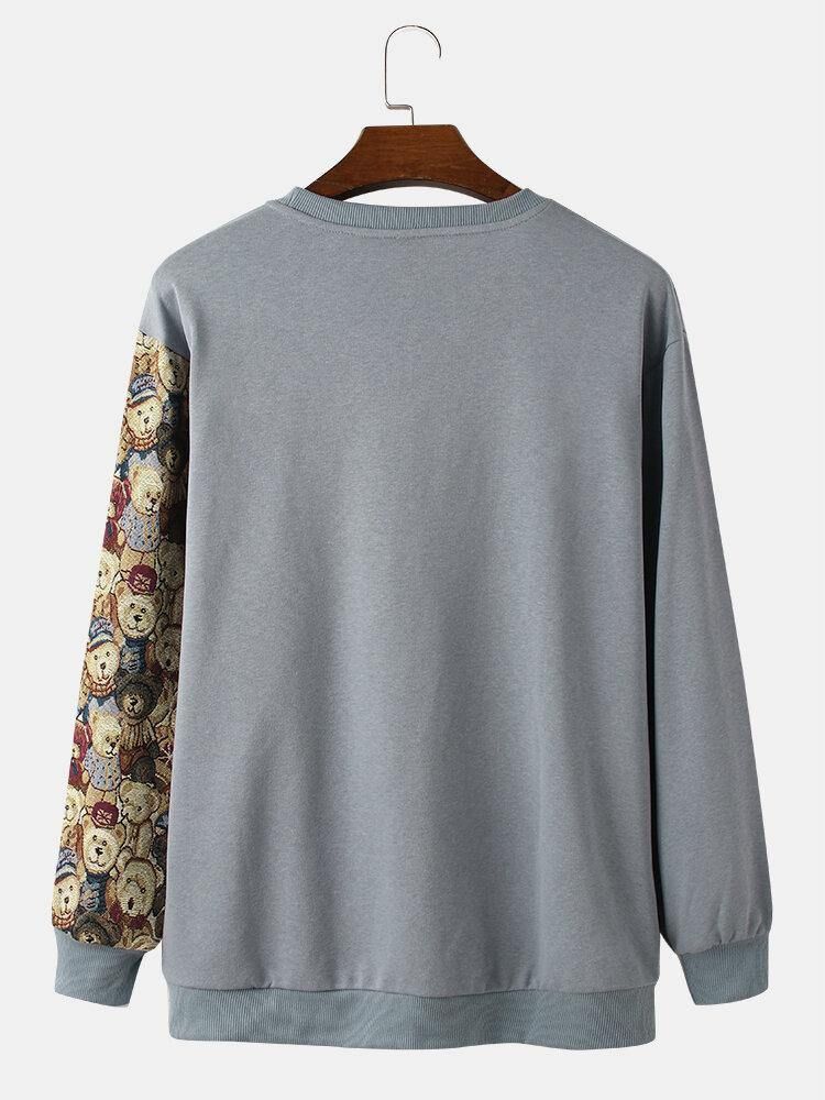 Menns Tegneserie Bjørnemønster Patchwork Bomullsgensere Med Rund Hals