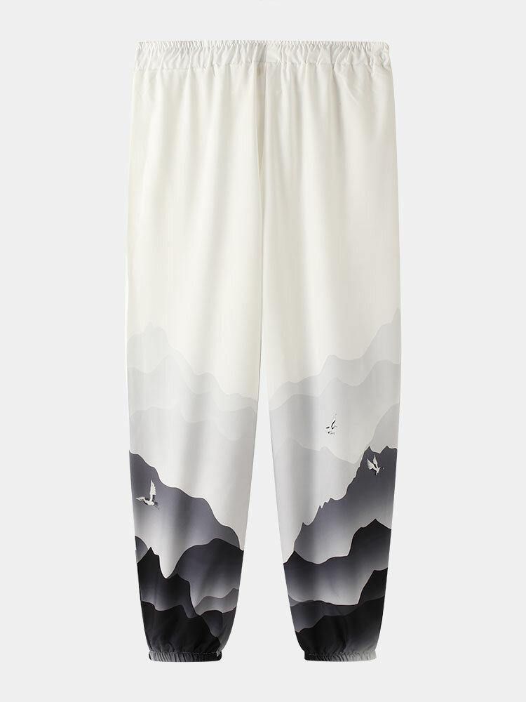 Menns Uformelle Landskapstrykk Løse Bukser Med Snøring