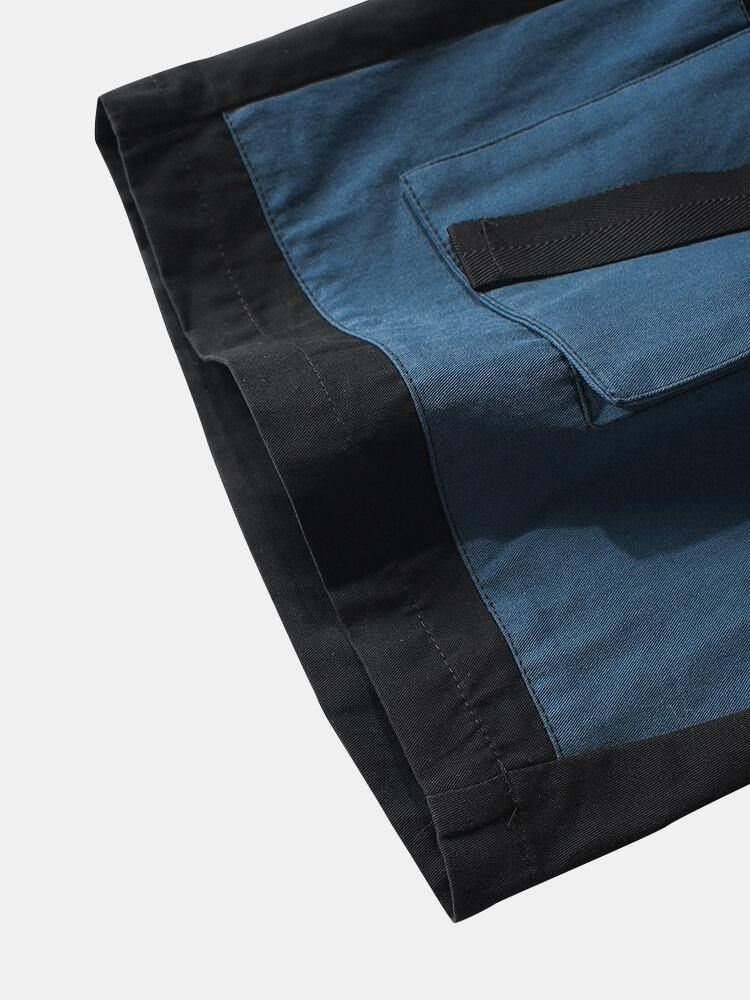 Menns Uformelle Stor Lomme 100 % Bomull Color Block Cargo Shorts