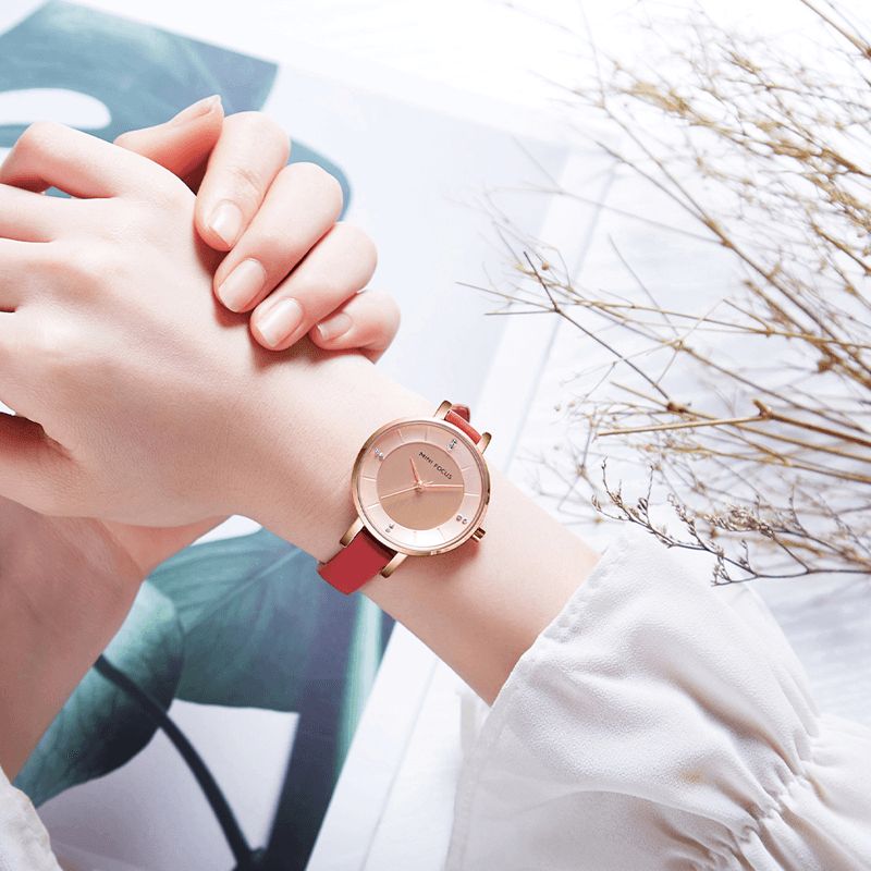 Mini Focus 0255L Mote Dameklokke Lett Luksus Vanntett Enkel Lærreim Dame Kvartsklokke