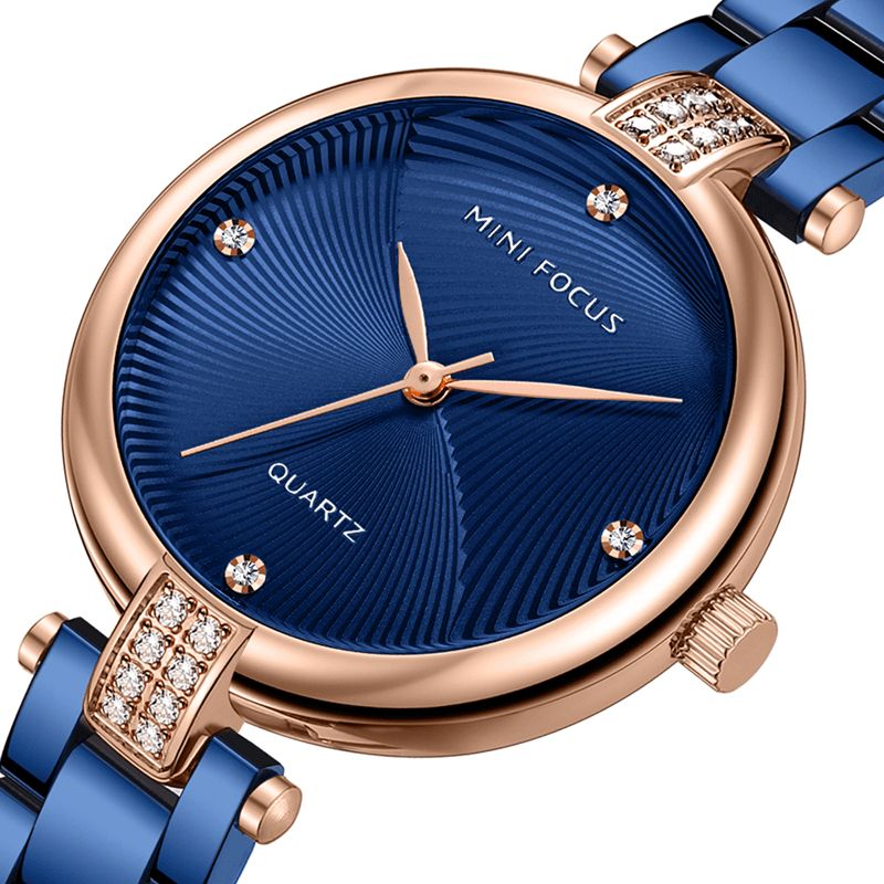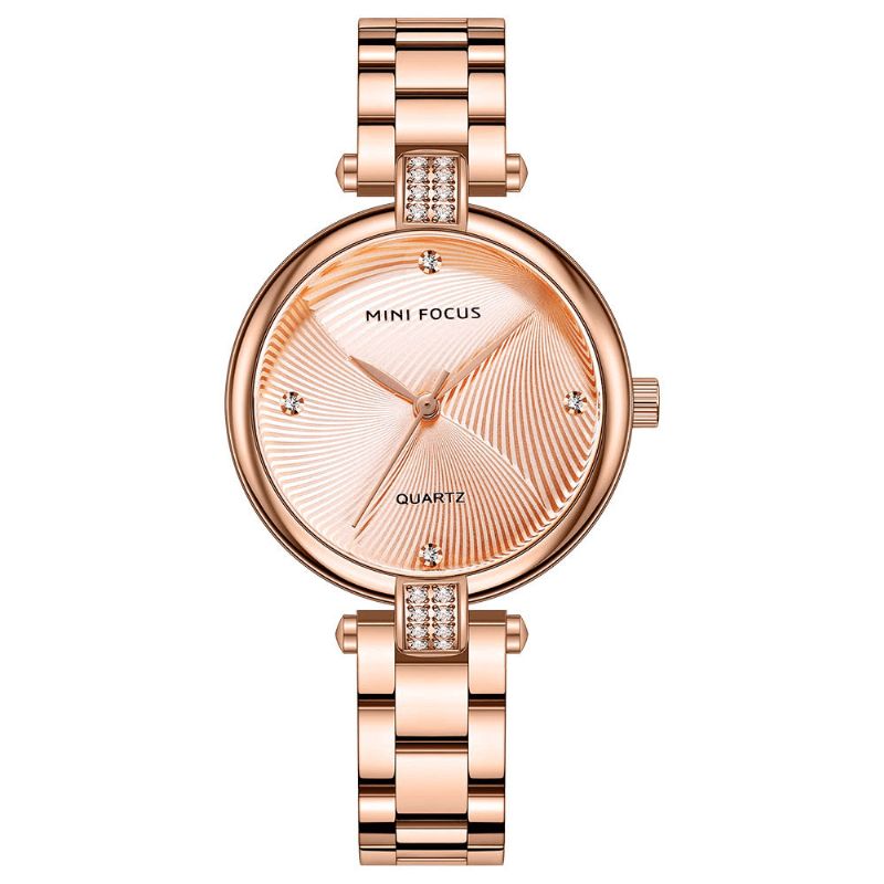 Mini Focus 0310L Mote Dameklokke Diamantsett Enkel Rustfri Stålreim Enkel Vanntett Kvinne Kvartsklokke