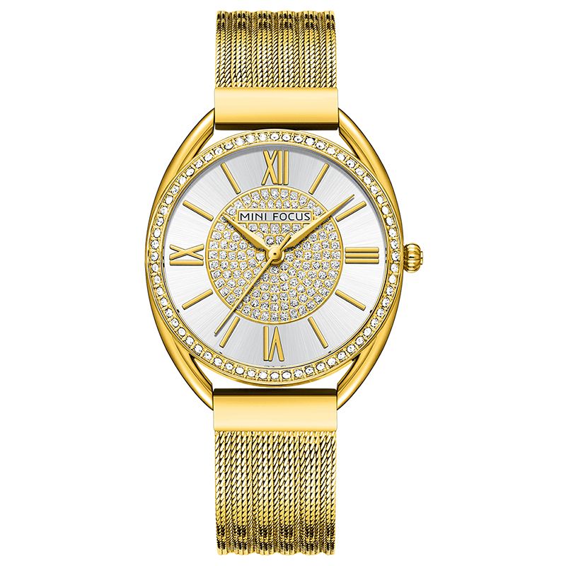 Mini Focus 0425L Casual Elegant Rhinestones Dekorasjonsskive 3Atm Vanntett Armbåndsur For Kvinner Kvartsklokke