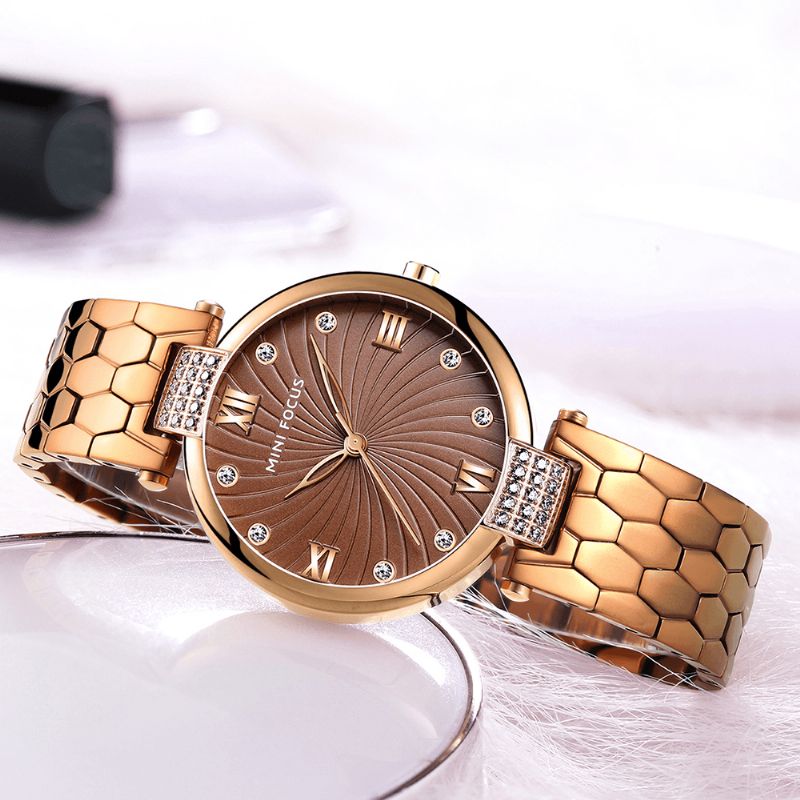Mini Focus Mf0186L Luksus Analog Armbåndsur For Kvinner I Rustfritt Stål Motekvartsklokke
