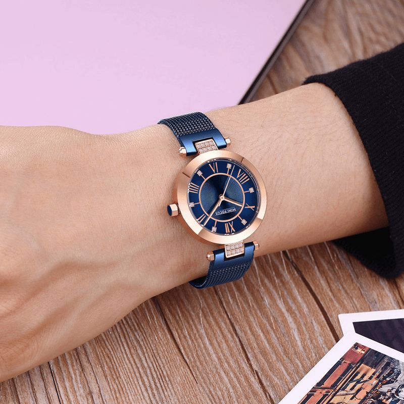 Mini Focus Mf0215L Casual Rome Number Design Vanntett Mesh Steel Kvartsklokke Dameklokke